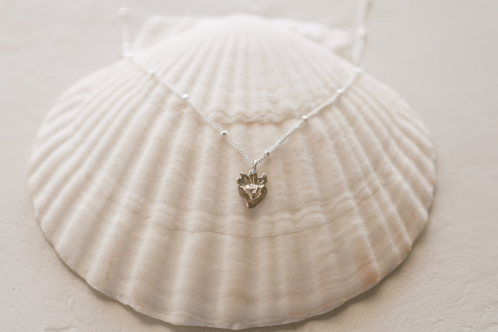 Tiny Sacred Heart Necklace in Sterling Silver