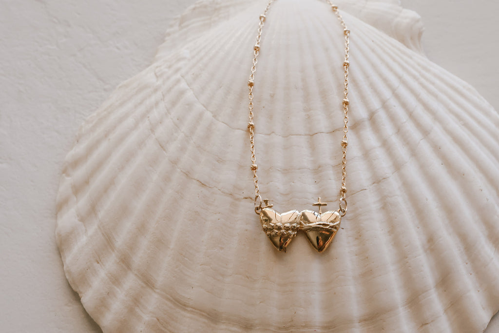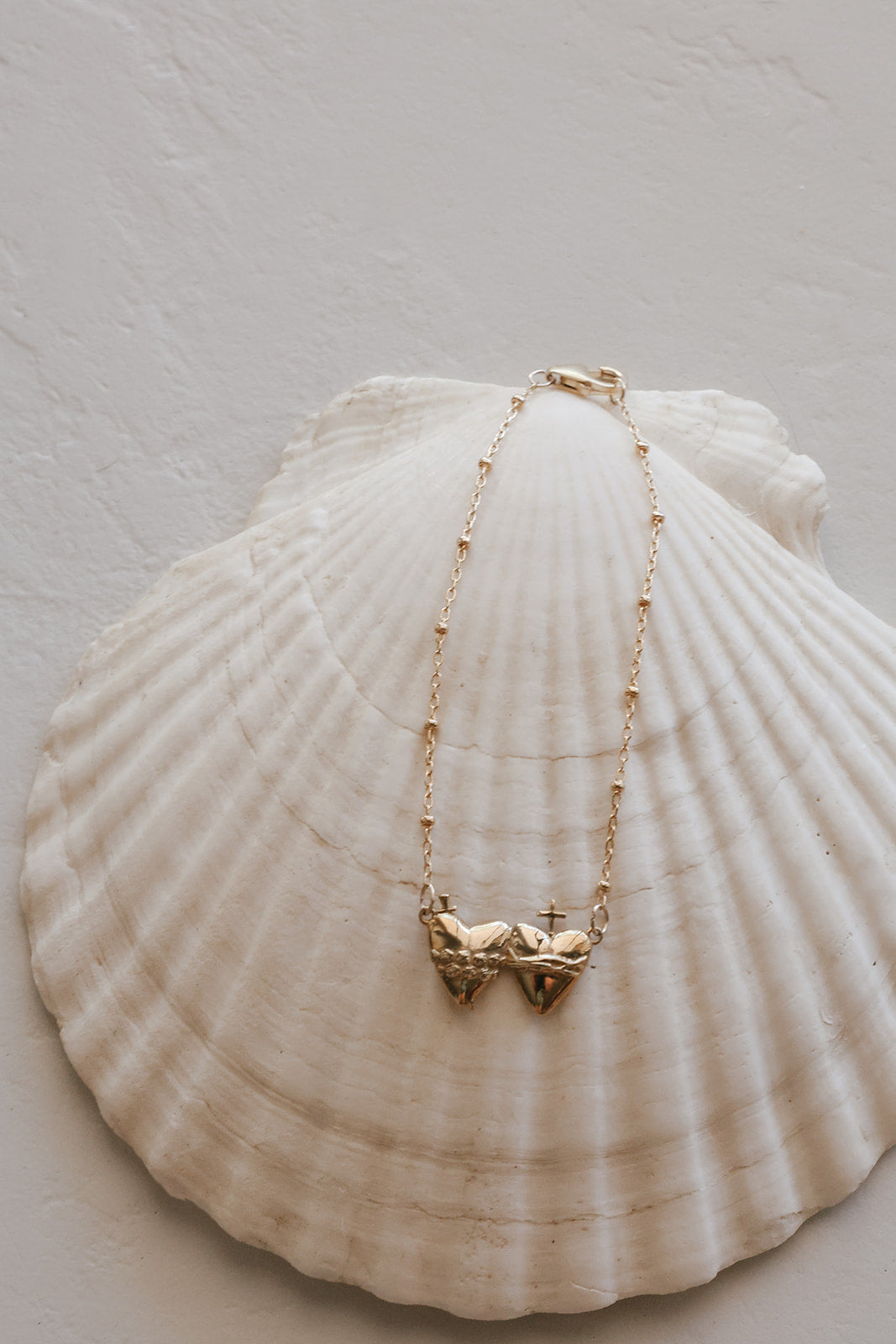 Sacred Heart and Immaculate Heart Bracelet shows two of the most iconic hearts in human history. I find it beautiful and telling that the most popular hearts are those of a mother and her child. The Sacred Heart of Jesus is paired with the Immaculate Heart of Mary. This Catholic Bracelet is beautiful and timeless. Here at The Little Catholic, we have a devotion to the Sacred Heart, so it's no wonder that we have the largest collection of Sacred Heart jewelry.