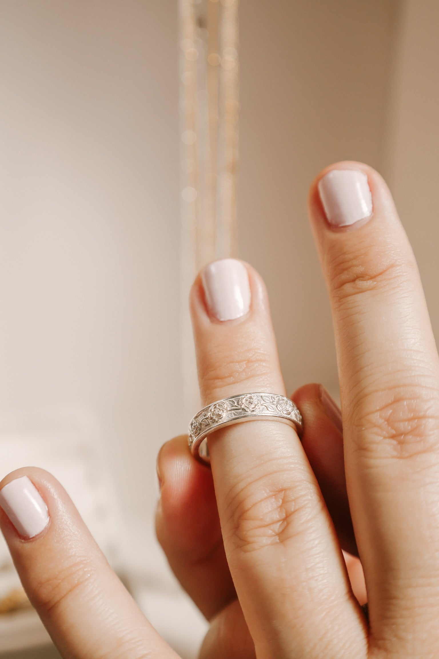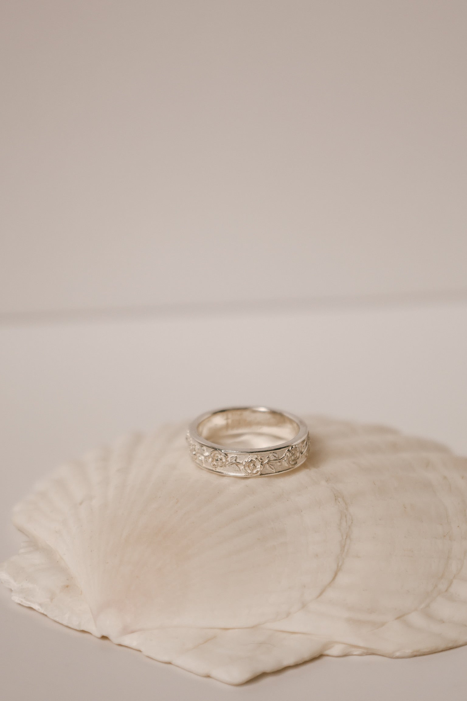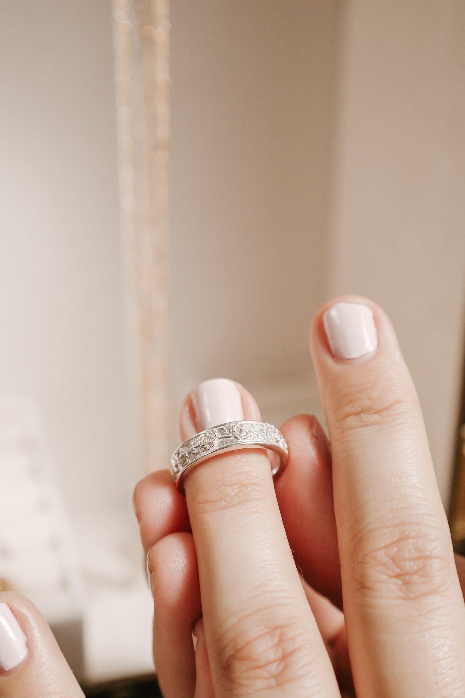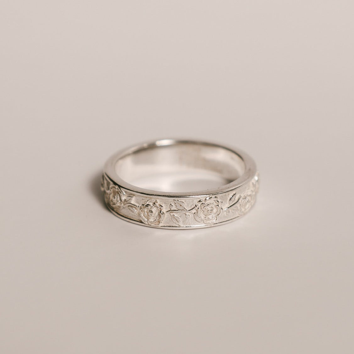 Each rose is formed by hand in America by skilled craftsmen who understand silver the way poets understand language—through rhythm, restraint, and care. Traditional methods and patient hands give this ring its character and quiet strength.