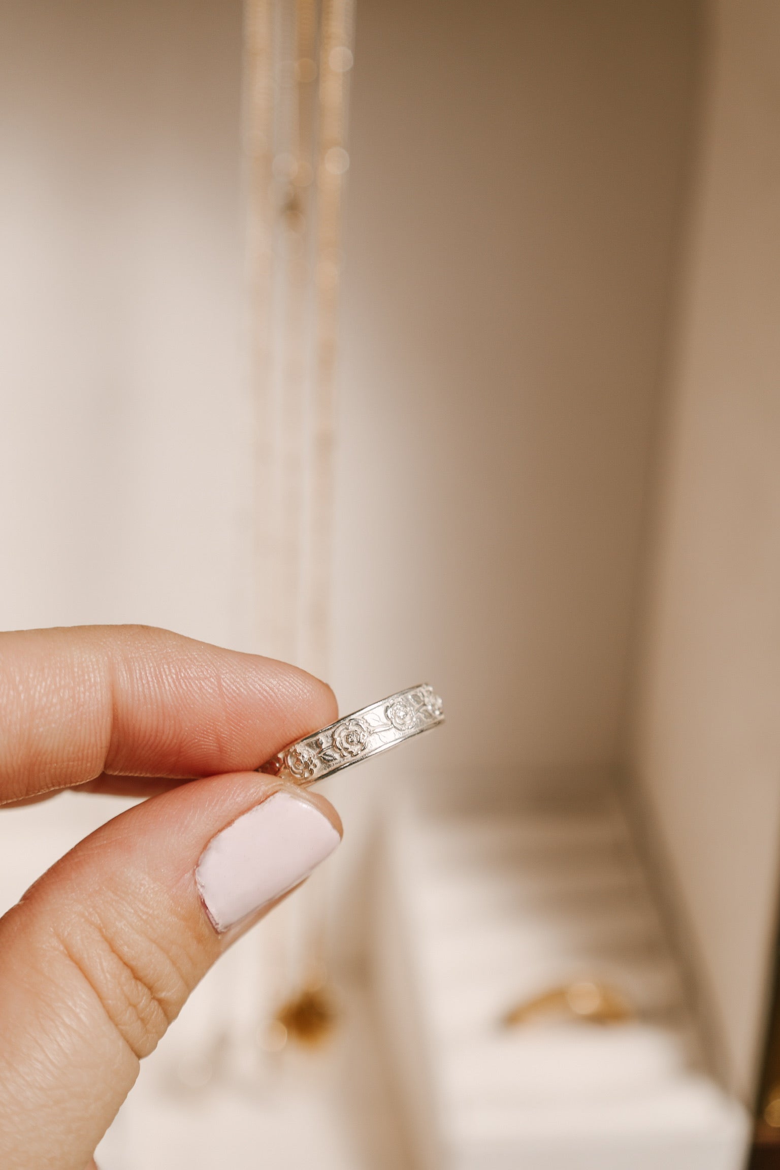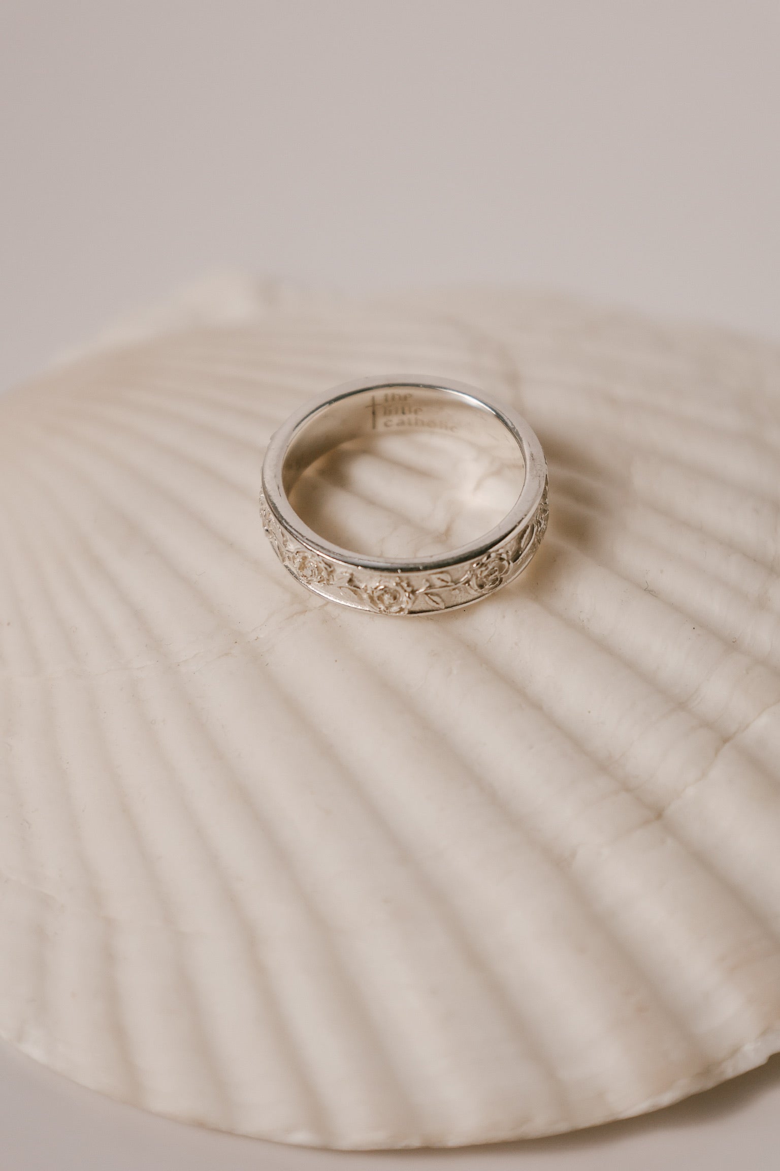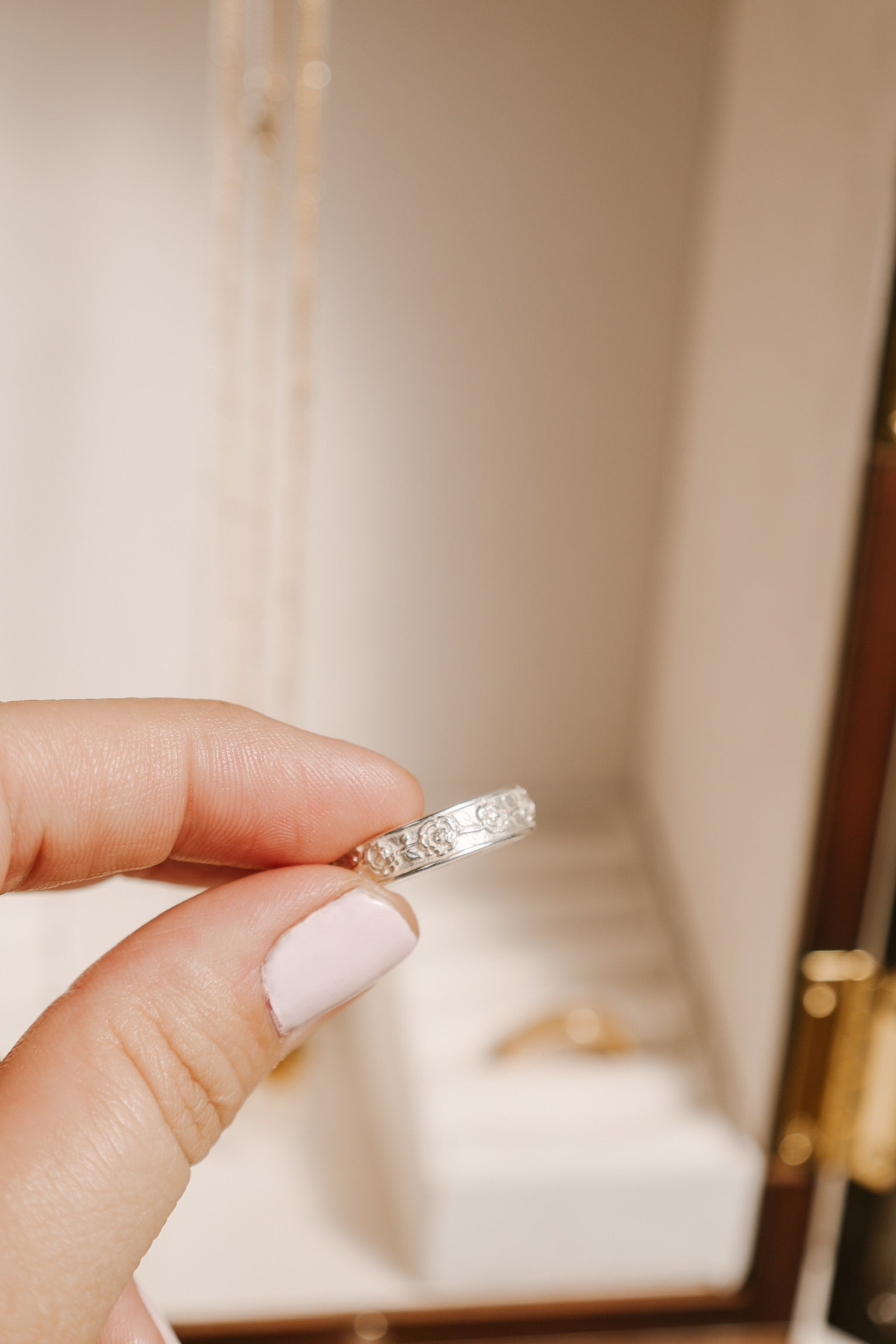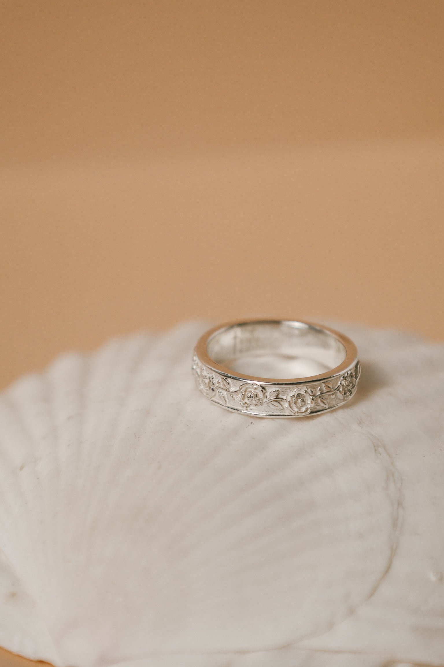 Each rose is formed by hand in America by skilled craftsmen who understand silver the way poets understand language—through rhythm, restraint, and care. Traditional methods and patient hands give this ring its character and quiet strength.