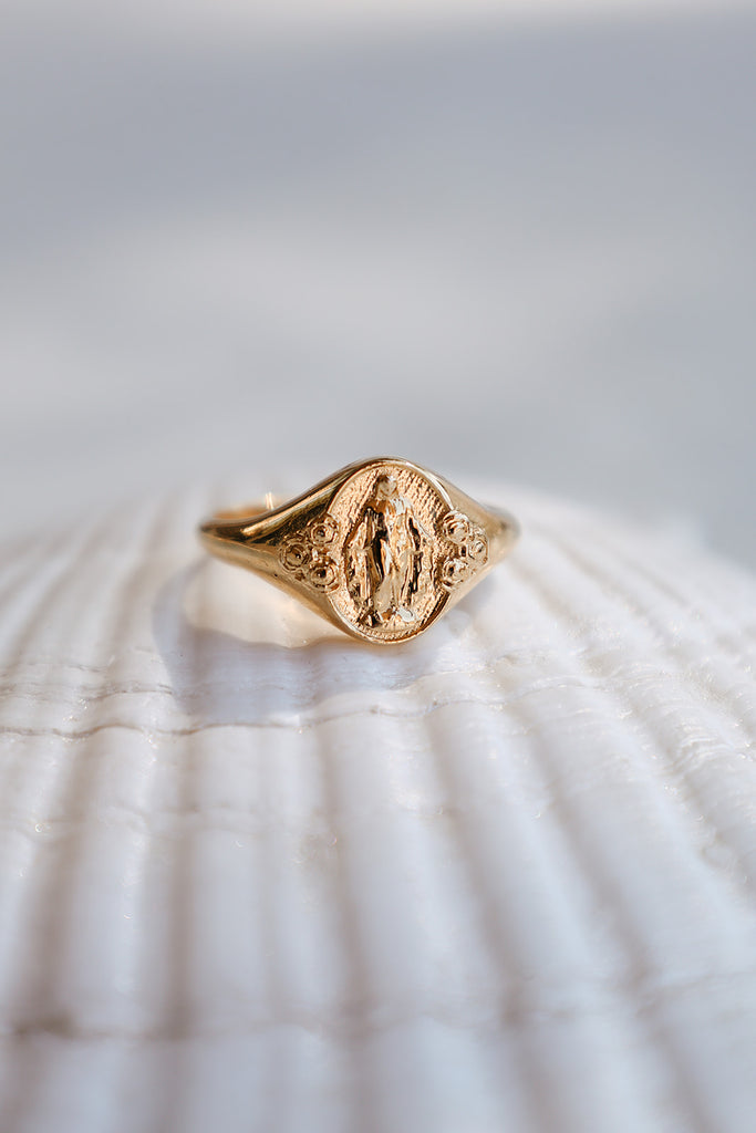 Find the perfect ring to honor your favorite saint, recall a special devotion, or simply reflect your inner beauty. Our stunning rings are hand-crafted with fresh water pearls, 14k rose gold, Sterling silver, Gold Filled, Gold Vermeil, 14k Gold, 14k white gold, brass and other precious materials to help you emanate radiance and truth wherever you go. Classy and refined, our religious and statement-making pieces are perfect for your friend, sister, mom, or any woman of faith in your life. They also make a lovely addition to your own jewelry collection.