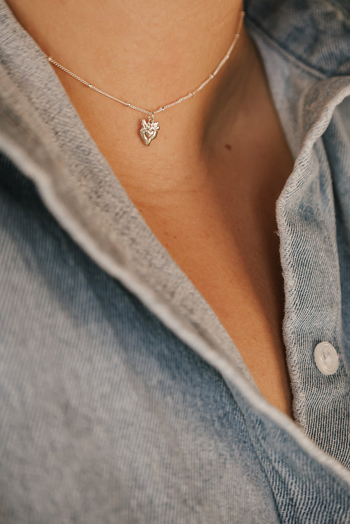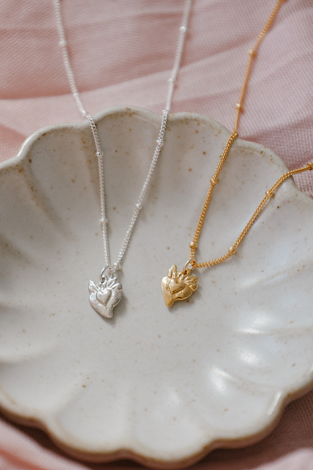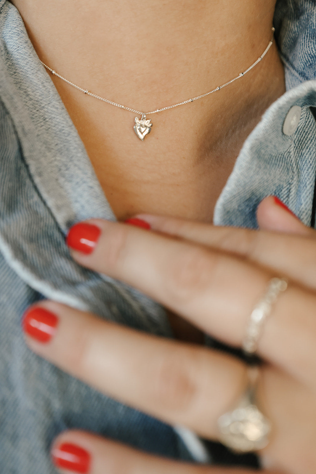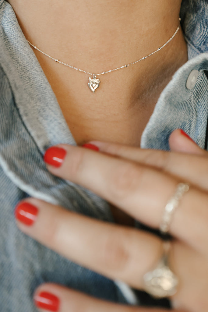 The Sacred Heart of Jesus is viewed as a symbol of "God's boundless and passionate love for mankind," a wearable devotion of the Lord's mercy and the transformative power of His divine love. This piece is sure to be a reminder; Most Sacred Heart of Jesus, Have Mercy on Us.