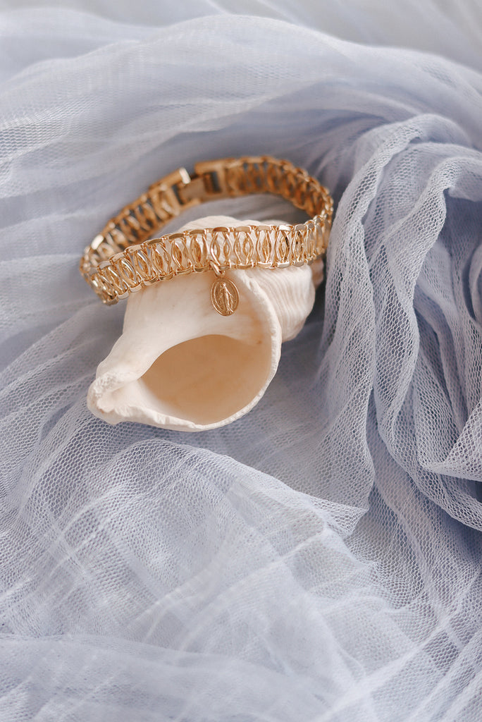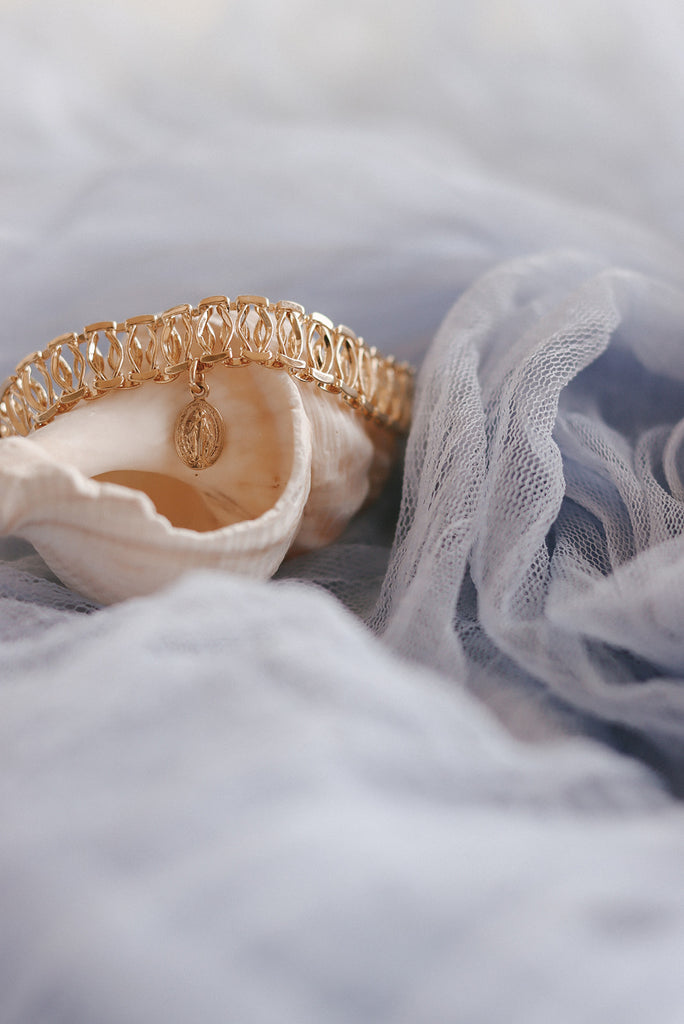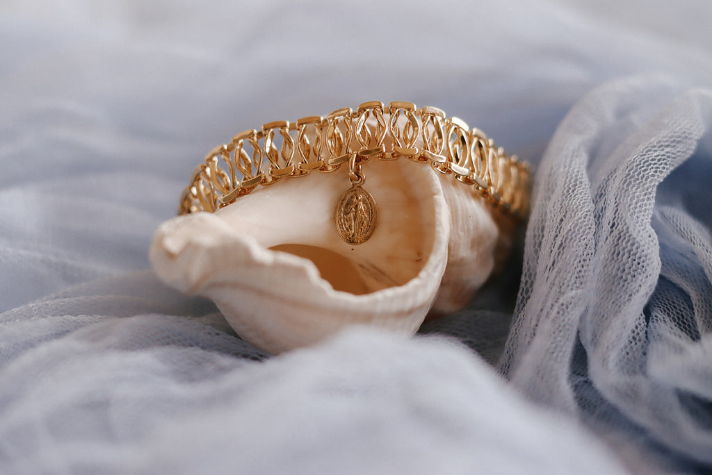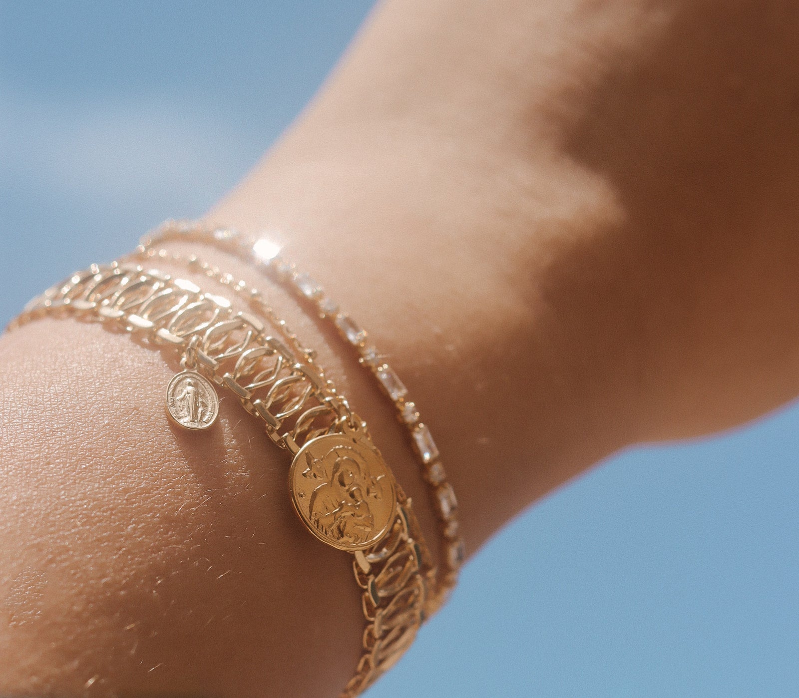 Introducing the Lace Miraculous Medal Bracelet, a luxurious statement piece for your spiritual journey. Crafted in 18K gold-filled material, this bracelet features a stunning double Cuban link chain design, exuding sophistication and exclusivity. A delicate Miraculous Medal honors Our Lady's grace, making it a perfect blend of faith and style for daily devotion or special occasions.