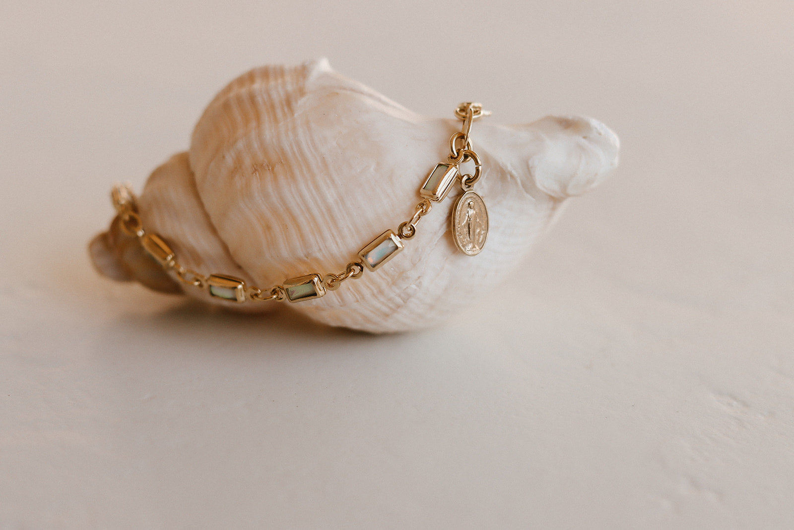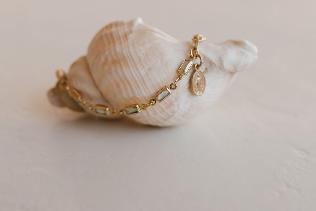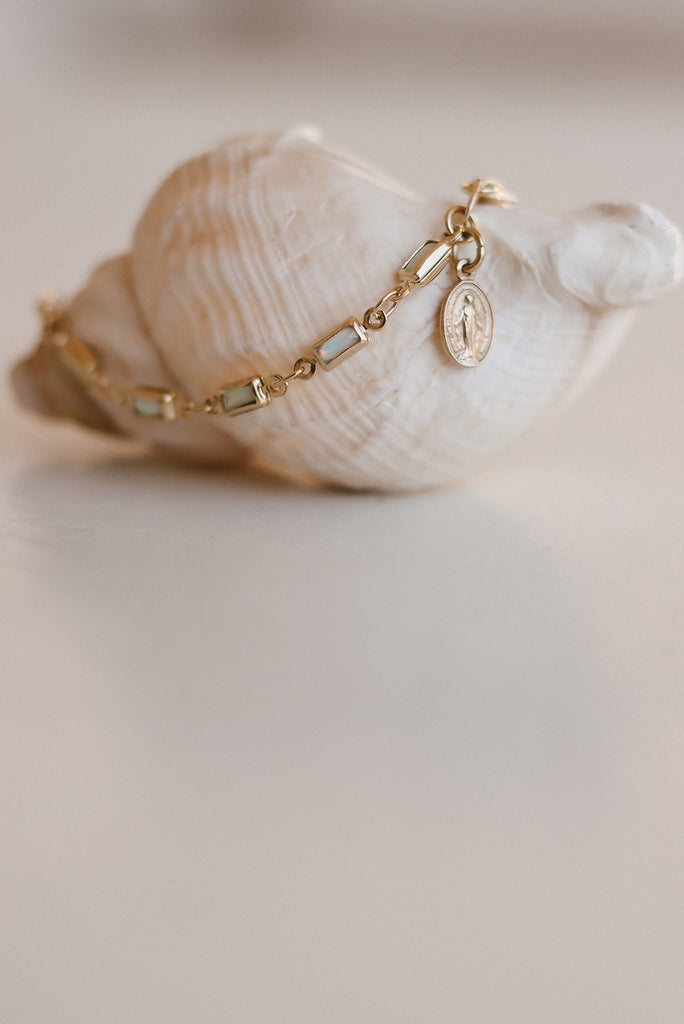 I love this dainty & unique bracelet. The opal is just the right touch & having the miraculous medal attached makes it a beautiful bracelet!