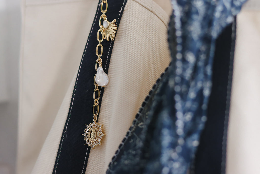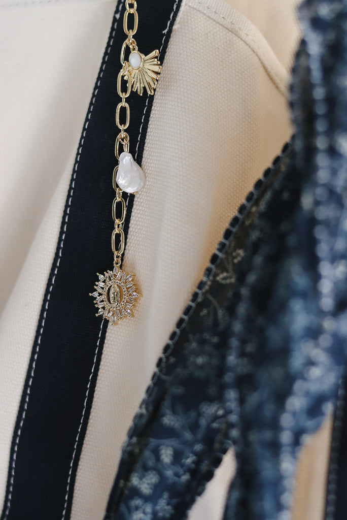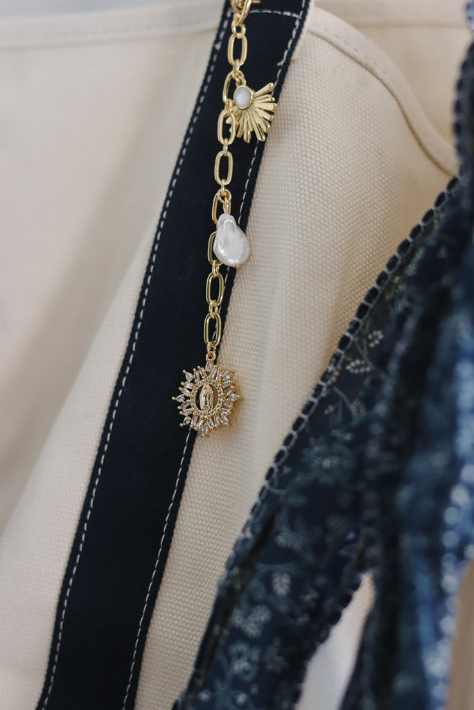 Enhance your faith with our Blessed Mother Charm Chain, a beautifully crafted piece from our collection. Made with durable gold-filled material, this chain features a radiant Blessed Mother medal with sparkling accents, a ray pendant, and a pearl charm, symbolizing love, protection, and devotion. Its elegant design adds a touch of spirituality to your daily life.
