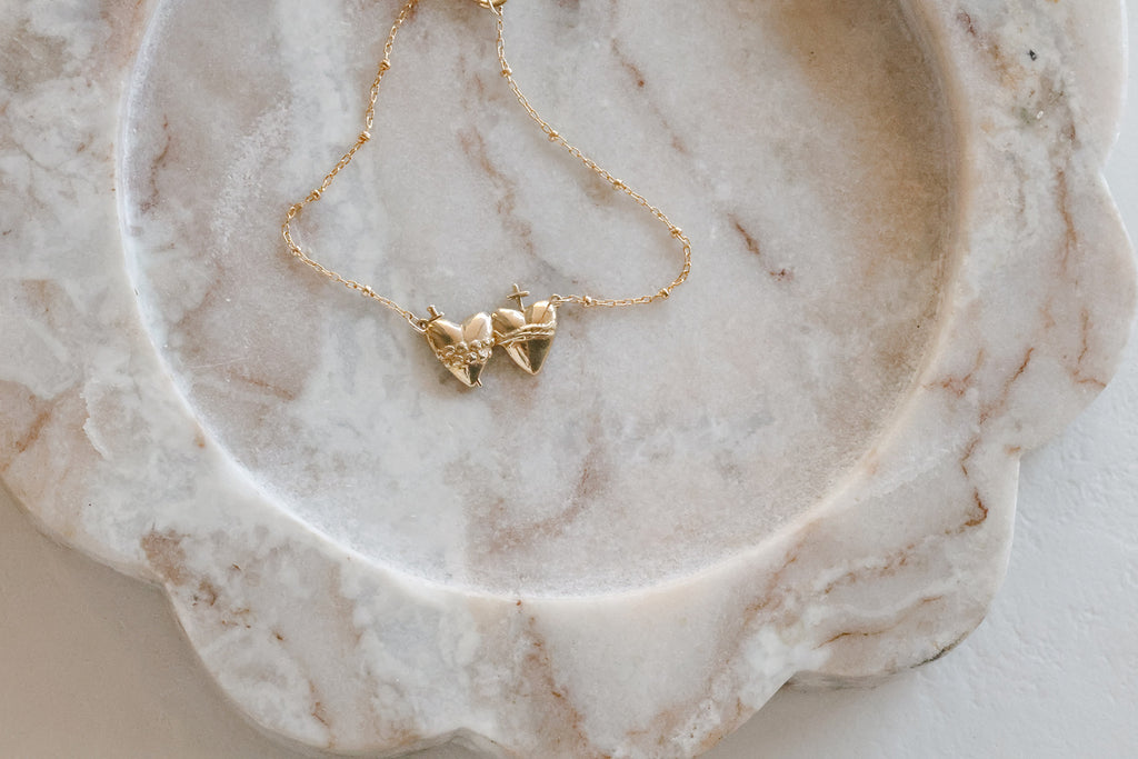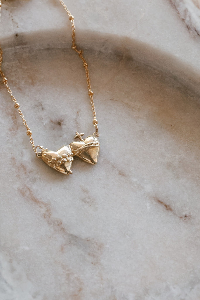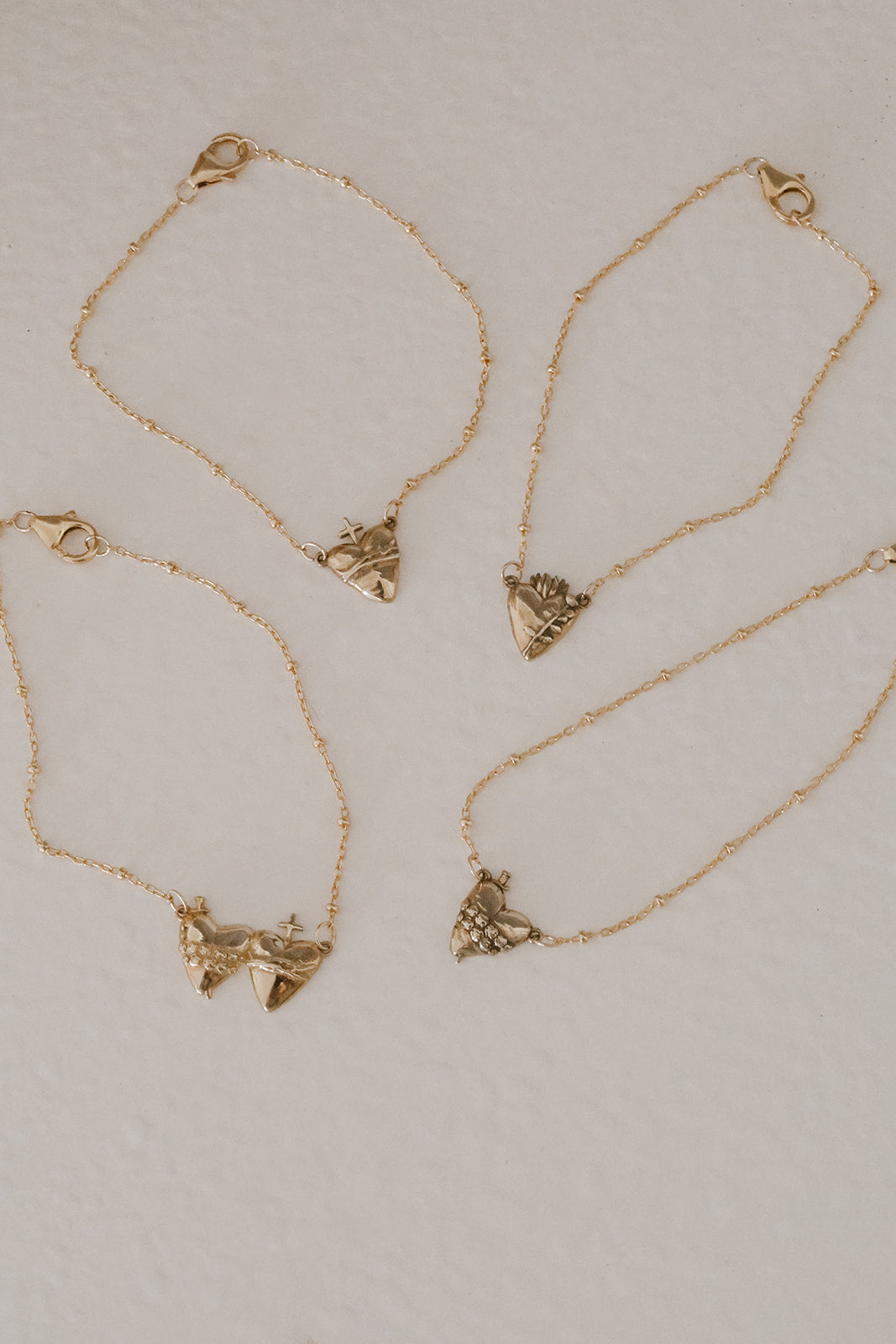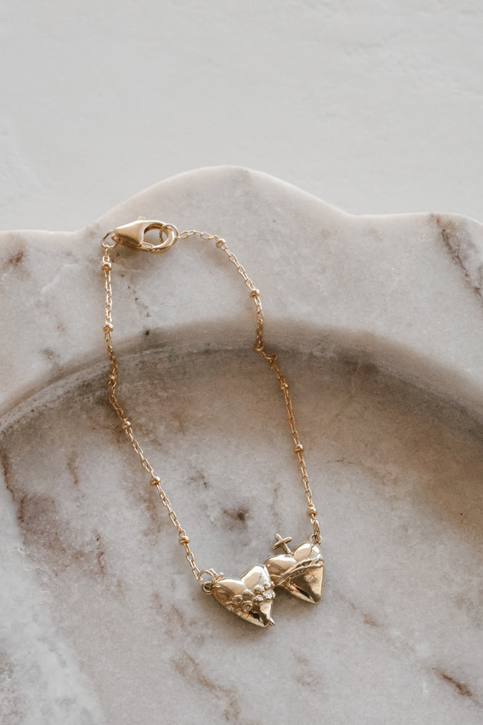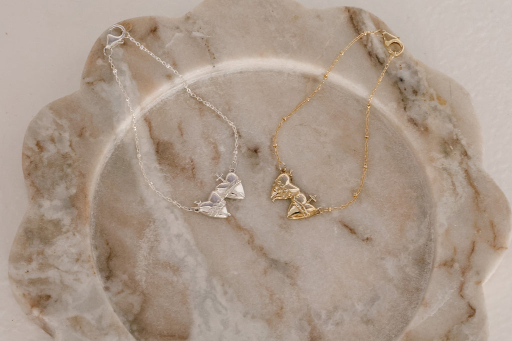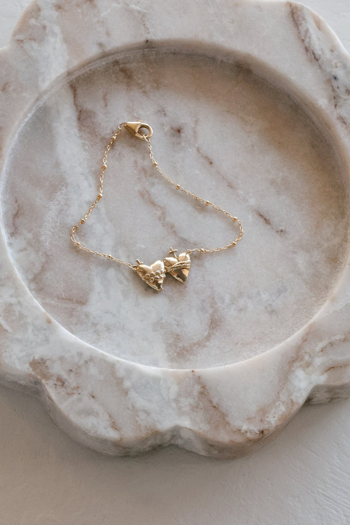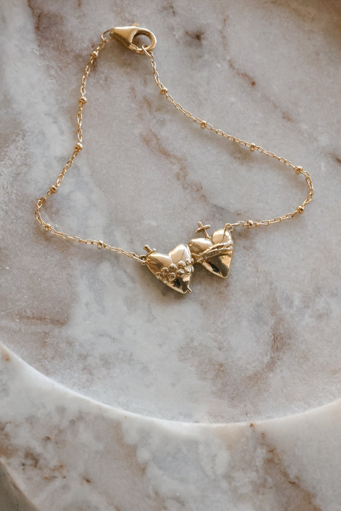 Sacred Heart and Immaculate Heart Bracelet shows two of the most iconic hearts in human history. I find it beautiful and telling that the most popular hearts are those of a mother and her child. The Sacred Heart of Jesus is paired with the Immaculate Heart of Mary. This Catholic Bracelet is beautiful and timeless. Here at The Little Catholic, we have a devotion to the Sacred Heart, so it's no wonder that we have the largest collection of Sacred Heart jewelry.