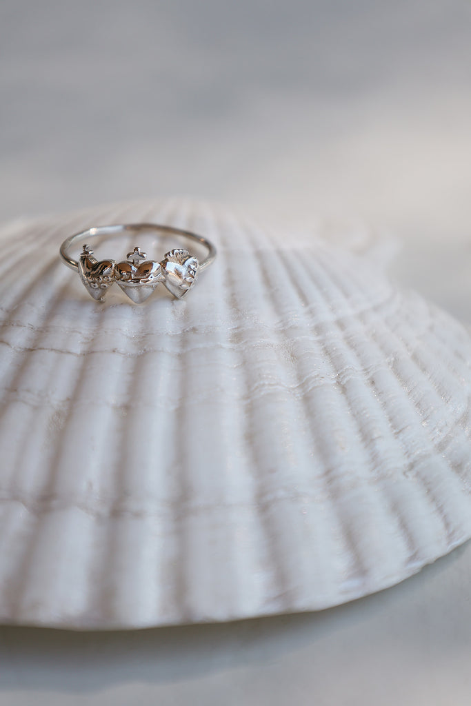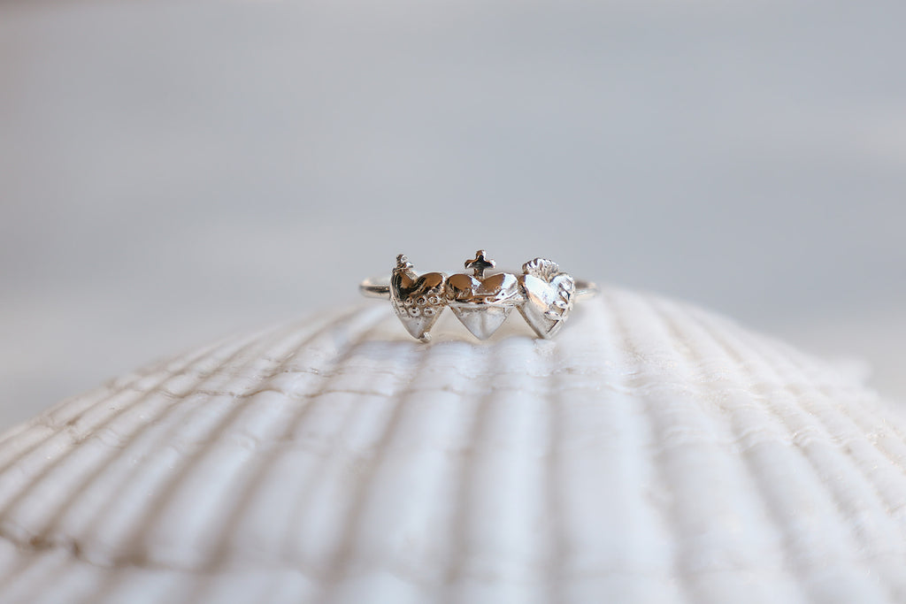 This Holy Family Hearts® ring is made out of solid 925 Sterling Silver. This beautiful Catholic Ring is ethically handmade in Southern California. All of the items in our Holy Family Hearts® collection is Ethically handmade in Southern California. Handmade Items vary in shape, markings, and polish patterns. This is a hand polished ring.