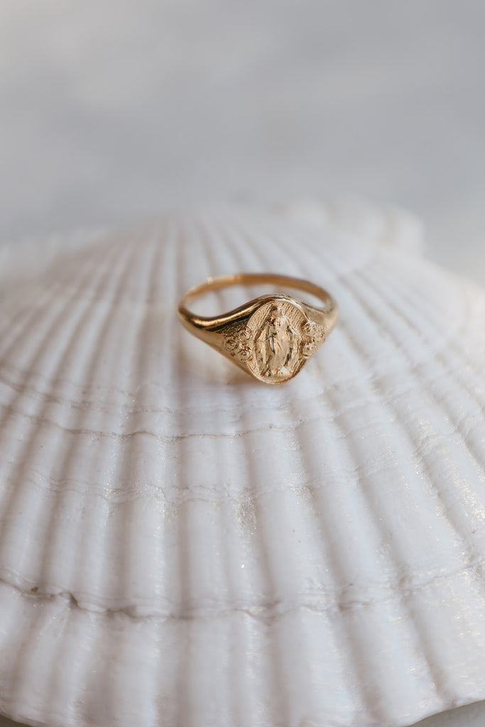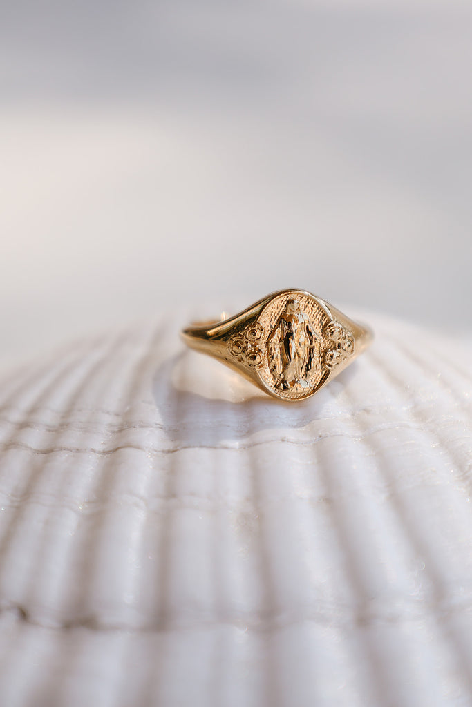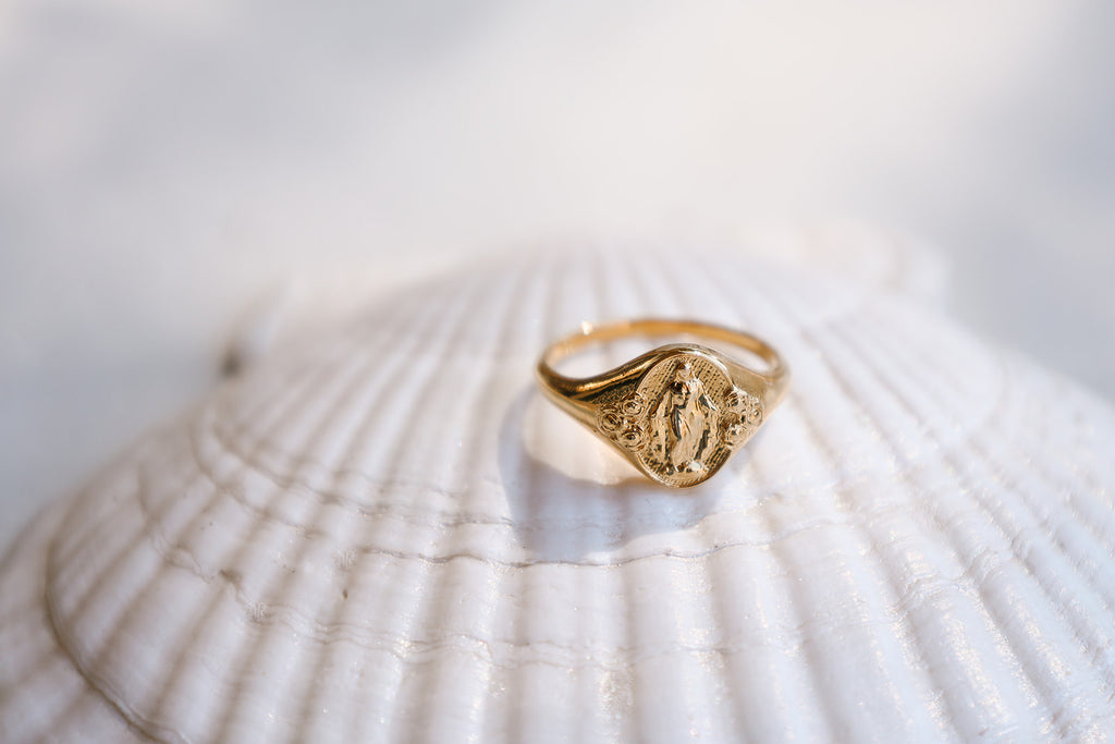 -Miraculous Medal Signet Ring in 14K Gold, Click Here.