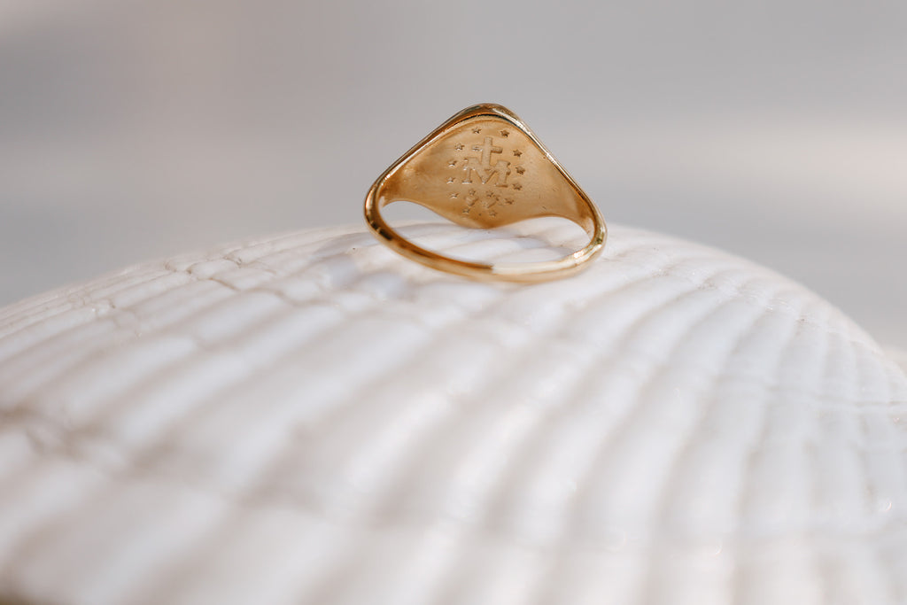 Why wear Catholic Rings? Catholic Rings are a great way to share your faith with the world and serve as a reminder of how deeply you are Loved by Jesus Christ. This Miraculous Medal Signet Ring is a nod to the Old World with a Modern look. Catholic rings remind you to pray. The Little Catholic Has the largest selection of Handmade Catholic Rings that you can only find here!