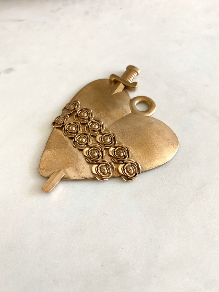 This gorgeous Immaculate Heart of Mary can be used as table top decor, shadow box art, prayer space decor, and more! The design is raised, while the back is blank. Over time, the polished bronze medals will develop a beautiful patina, adding to their charm. If you prefer a shiny look, simply clean it with a bronze cleaner. Ethically handmade in Southern California, this piece is a beautiful way to enhance your home decor with spiritual elegance.